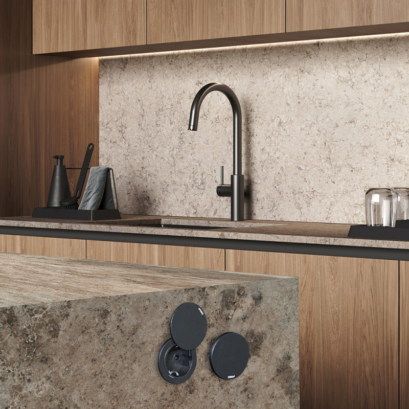 One finns i två utföranden: svart/svart eller rostfritt/svart, båda med en stilren design som smälter in i modern inredning. EVOline One är en diskret och elegant detalj som ger dig både funktionalitet och design i ett.