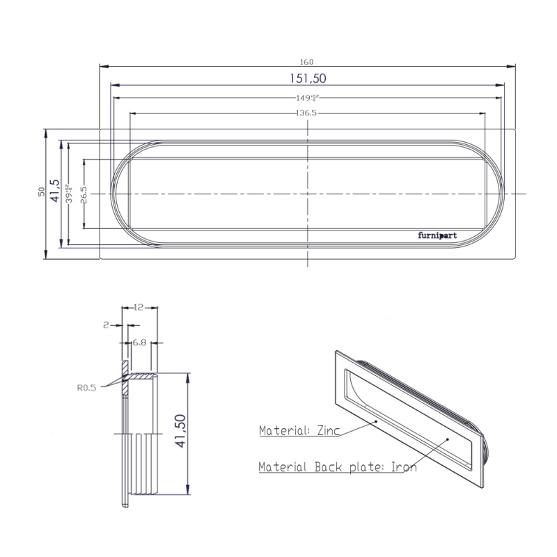 Monteringsinstruktion för infällnadshandtag:1. Fräs ett hål enligt handtagets exakta infällnadsmått för att säkerställa en perfekt och stabil passform.