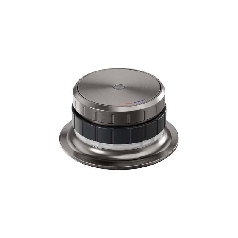 Blandaren levereras även med en innovativ styrenhet som placeras intill blandaren. Det LED-belysta urvalshjulet ger en intuitiv och tydlig användarupplevelse. Dessutom ingår två designanpassade brickor för en enhetlig installation av styrenheten, alternativt för kombination med tillhörande push-up-reglage för din diskho.