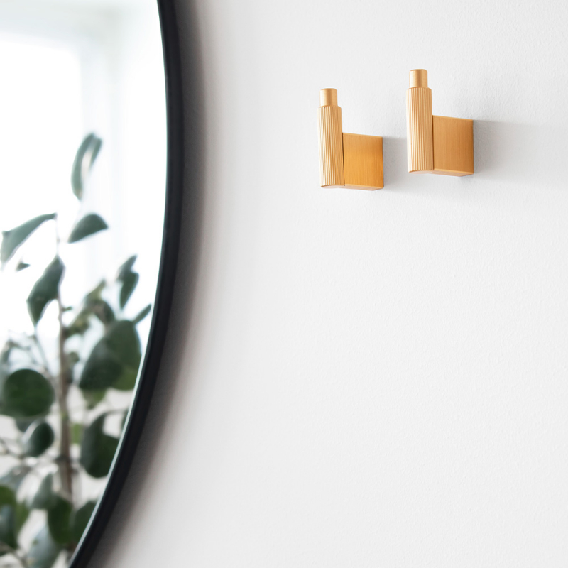 373121-11Arpa serien kombinerar en elegant industriell design med en subtil räfflad yta av ränder. Krok Arpa i borstad mässing har en tidlös design och passar in i både moderna och traditionella miljöer. Väggkroken är inte bara praktisk, utan också en vacker inredningsdetalj – det perfekta valet för både funktionell och estetisk upphängning.