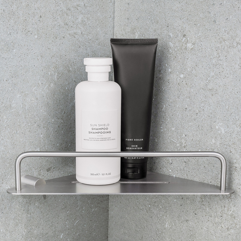 För att smälta in i just ditt badrum finns duschhörnhyllan i fem exklusiva utföranden: brunerad mässing, polerad krom, borstad nickel, polerad mässing och mattsvart. Ett genomtänkt val för ett badrum med känsla och karaktär.